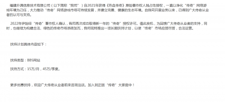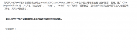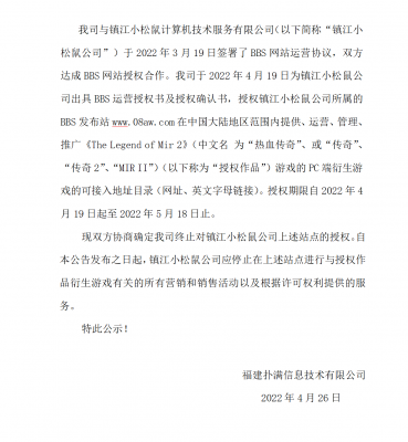 202204-26金年会|jinnianhui信息技术有限公司(以下简称“我司”)自2021年获得《热血传奇》原始著作权人独占性授权,一直...