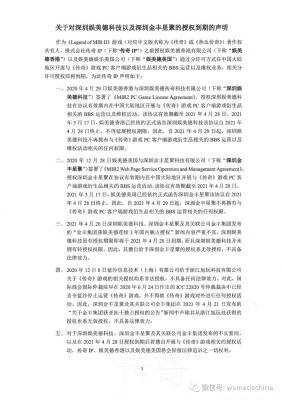202105-211:深圳娱美德传奇科技有限公司(以下简称“深圳娱美德”)此前通过传奇IP关联方所获得的一切权利,截至2021年4月28日已终止。自...